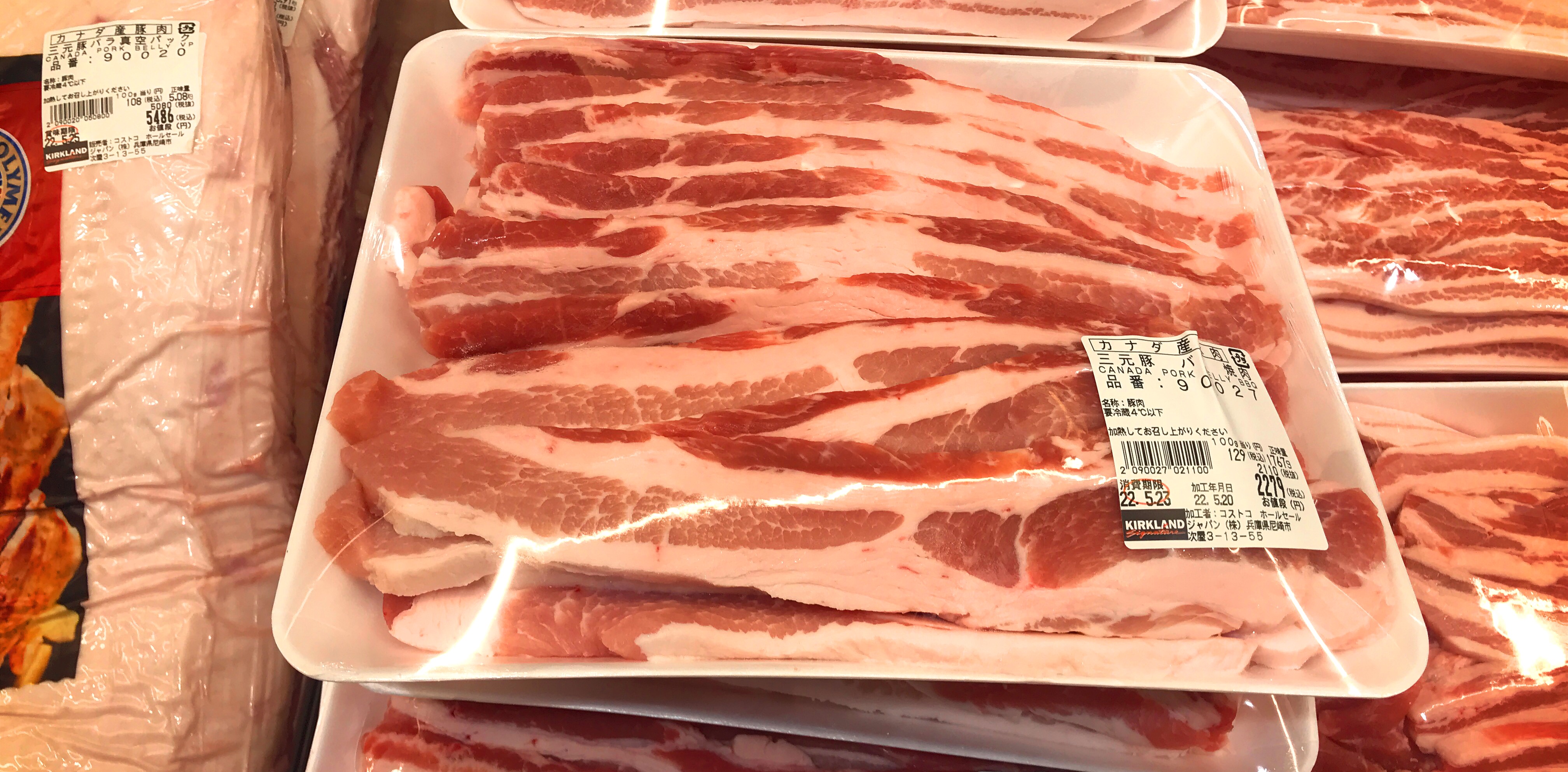 일본에서는 좀처럼 찾기 힘든 두꺼운 삼겹살입니다. 마트에서는 맨 샤부샤부용 두께밖에 없어서 아쉬운데 코스트코에선 그나마 두툼한 삼겹살을 팔고 있습니다.